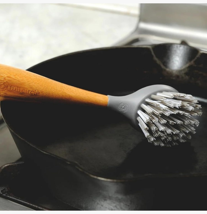 Full Circle Scrub Brush for Cast Iron Cookware, Dishes Pots, Sinks – Sustainably Sourced with Bamboo Handle.